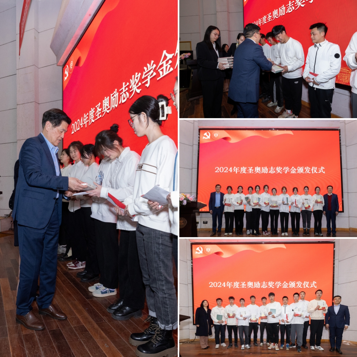活動(dòng)現(xiàn)場還隆重舉行了2024年圣奧勵(lì)志獎(jiǎng)學(xué)金頒發(fā)儀式。樊培仁董事長、樊彬董事長共同參與頒發(fā)2024年圣奧勵(lì)志獎(jiǎng)學(xué)金,并向受獎(jiǎng)學(xué)子贈(zèng)送了樊培仁董事長的個(gè)人傳記《成己惠人——樊培仁的企業(yè)家精神》。這本傳記不僅記錄了樊培仁創(chuàng)業(yè)經(jīng)歷,更飽含著“成己惠人”的人生智慧。可以為即將開啟職業(yè)生涯的學(xué)子們提供珍貴的啟發(fā)和指導(dǎo)。