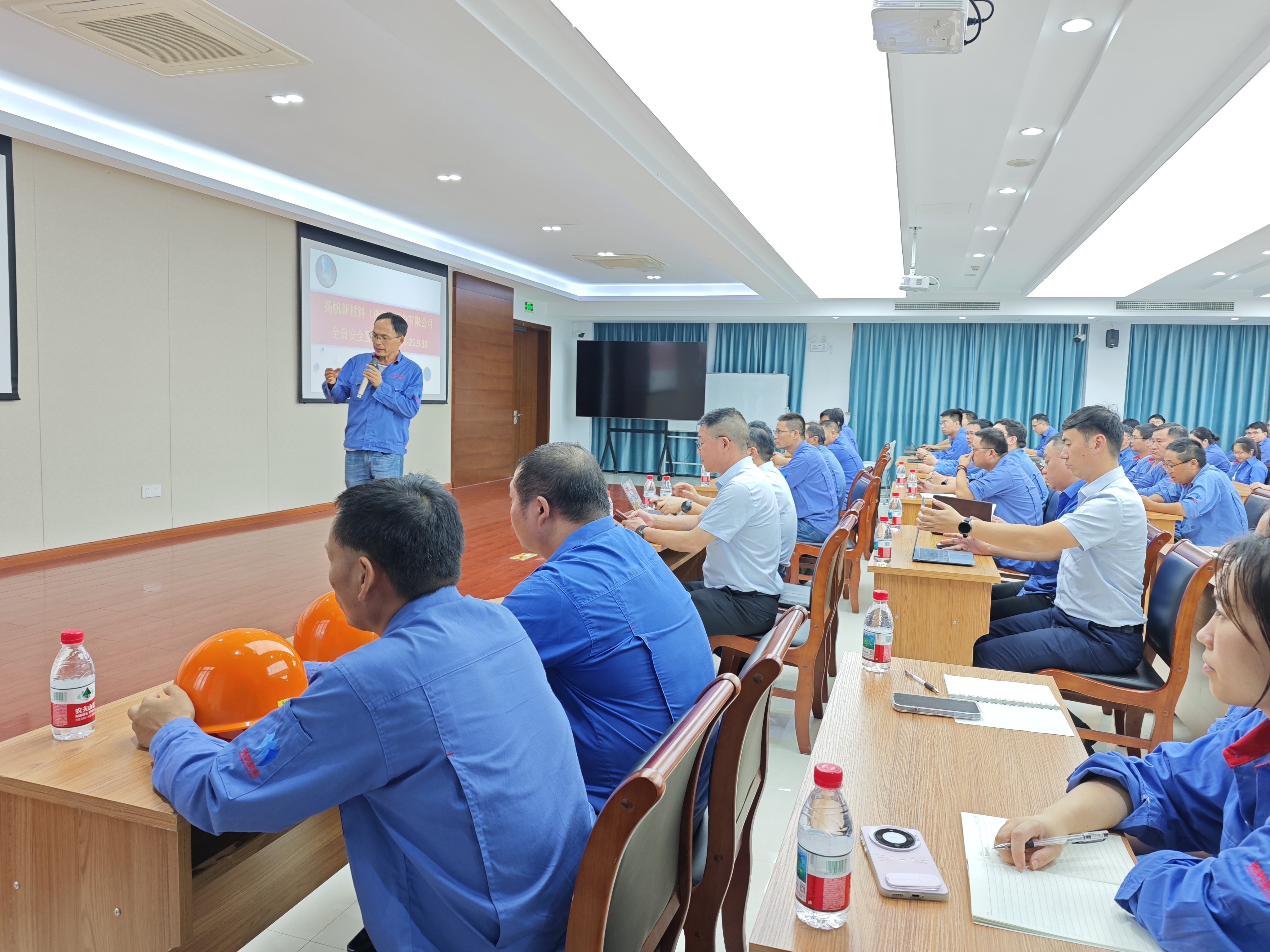 9月30日下午,揚帆新材料(浙江)股份有限公司在研究院三樓會議室組織開展了全員安全警示教育培訓(xùn)活動。此次培訓(xùn)由環(huán)安總監(jiān)舒國棟主持,董事長樊彬、總裁陶明出席并作出重要指示,公司全體員工參加培訓(xùn)。